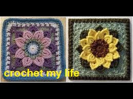 كروشيه ورده دايزي بداخل مربع جراني Youtube