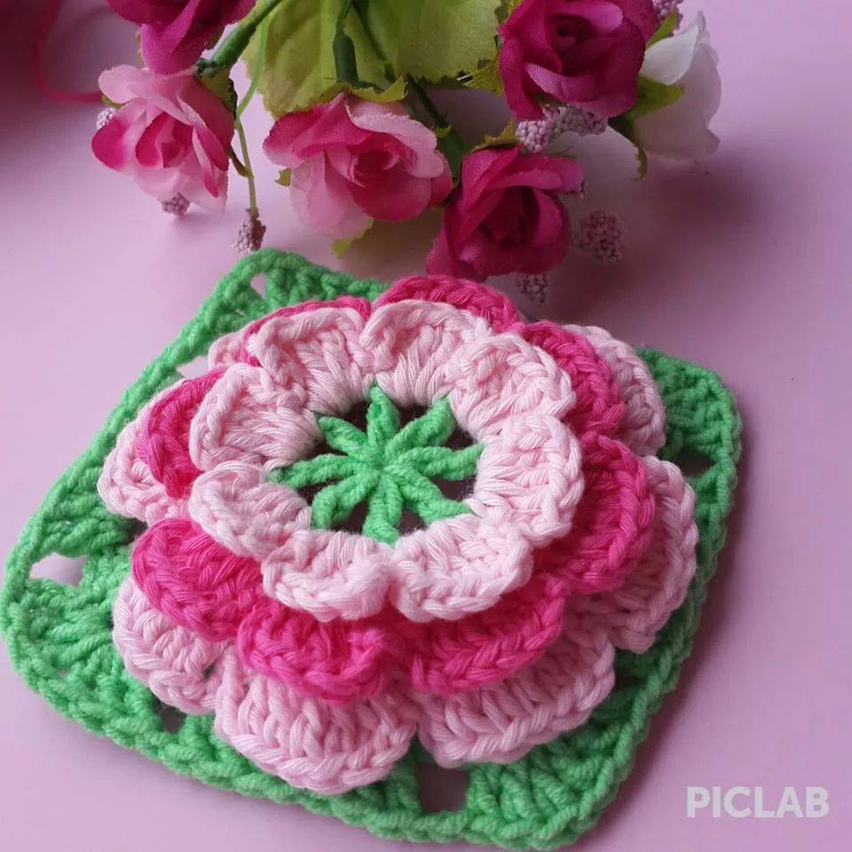 طريقة عمل وحدات مربعة وبداخلها وردة جميلة بالكروشية مربعات روعة Zozoweza