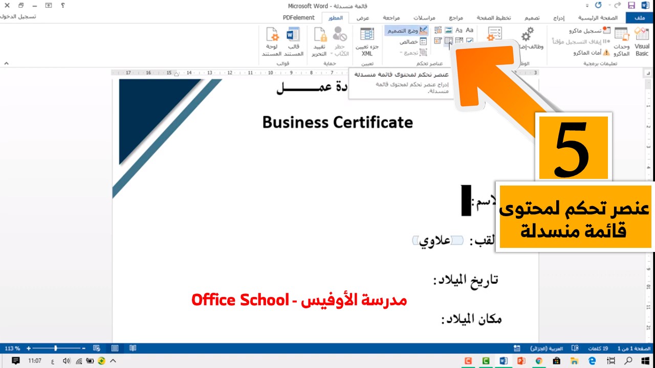 كيفية عمل قائمة منسدلة في Microsoft Word مدرسة الأوفيس Office School