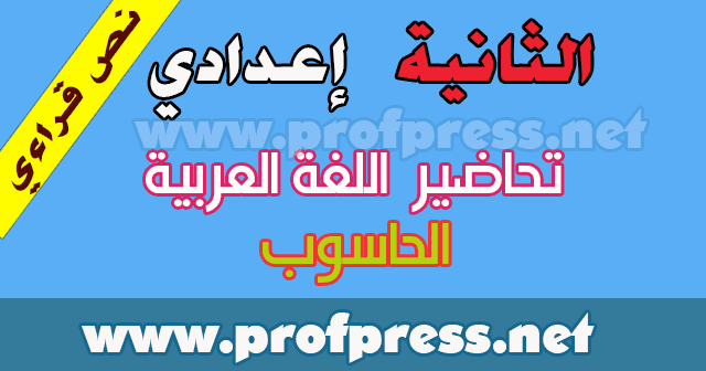 تحضير النص القرائي الحاسوب للسنة الثانية إعدادي مرشدي في اللغة العربية
