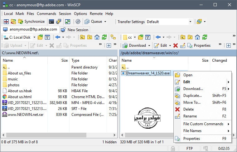تحميل برنامج Winscp لنقل الملفات للشبكة برابط مباشر دايركت أب