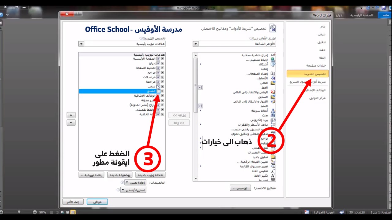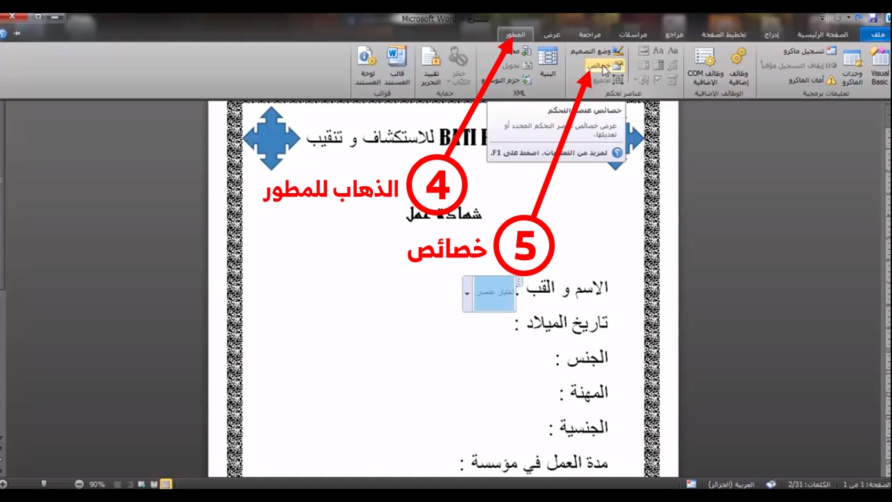 كيفية عمل قائمة منسدلة فى ملف الورد Microsoft Word مدرسة الأوفيس Office School