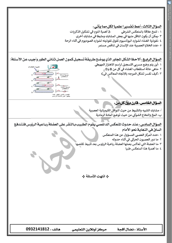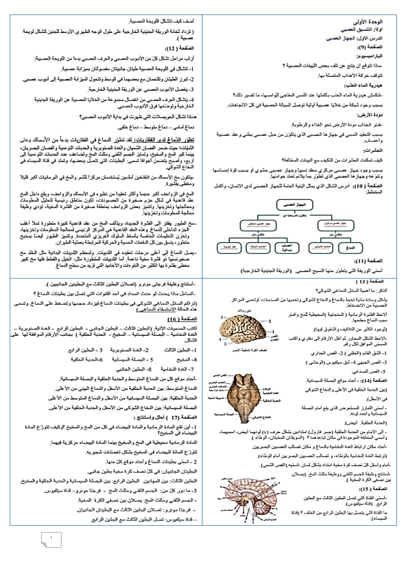 أوراق عمل العصبية في مادة العلوم للصف الثالث ثانوي العلمي الفصل الاول