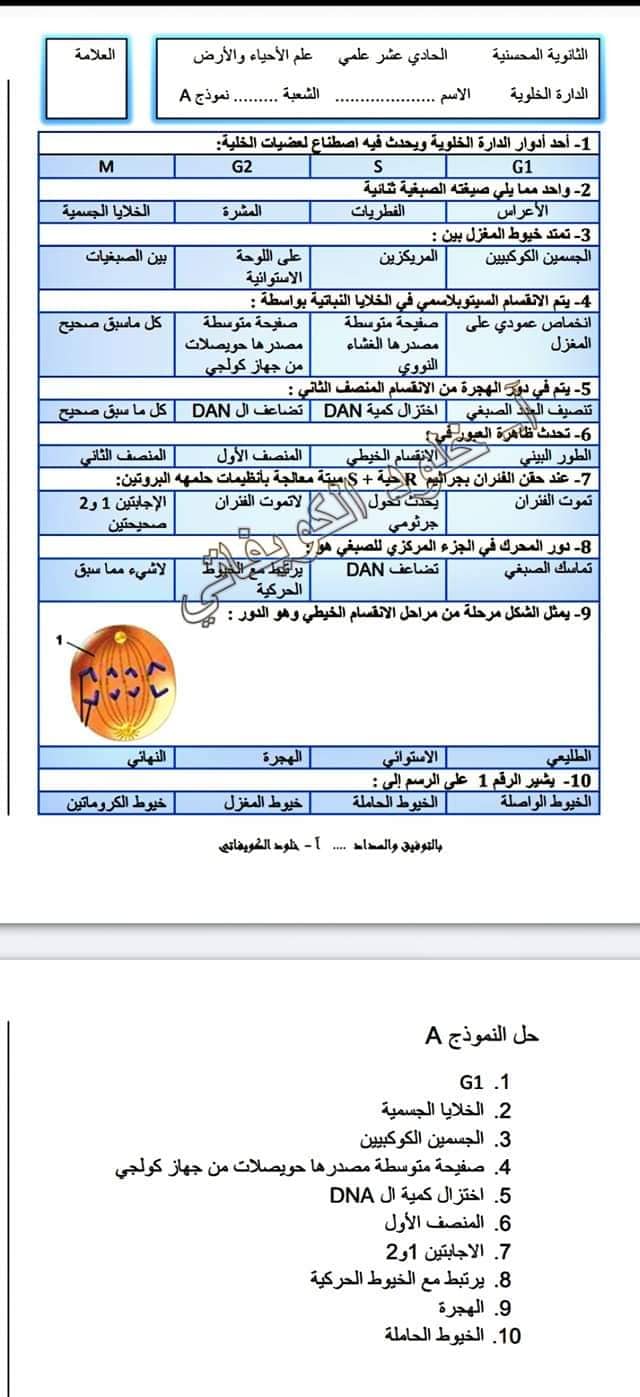 اختبار علوم الاحياء من الدرس 1 11 للصف الثالث الثانوي بكالوريا 2020