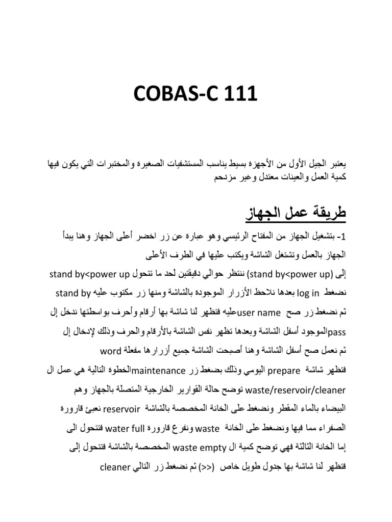 جهاز تحليل كيمياء الدم الذاتي Cobas C111 مكتب التقدم العلمي Asco فيسبوك