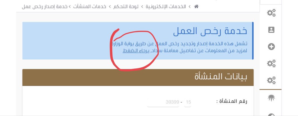 إتمام للخدمات On Twitter ادخل على خدمة اصدار رخص العمل ثم في الاعلى كما في الصورة