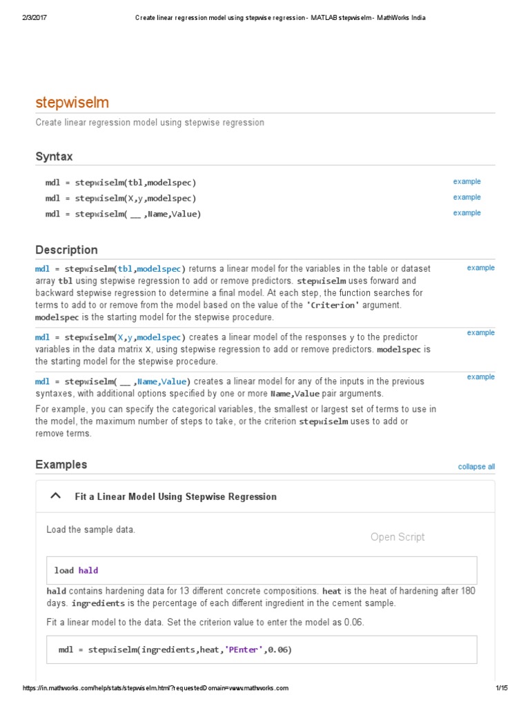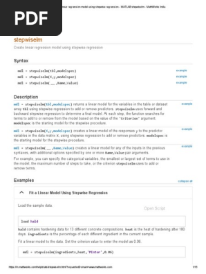 Interactive Stepwise Regression Matlab Stepwise