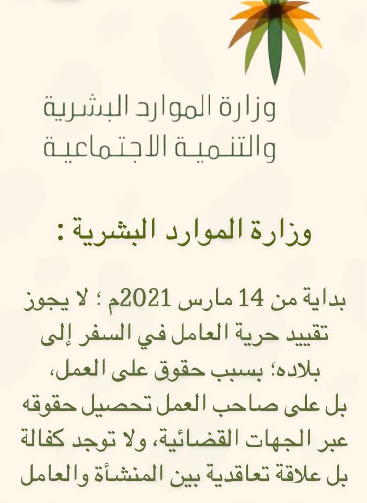 نظام العمل السعودي On Twitter إلغاء نظام الكفالة يدخل حيز التنفيذ 14 مارس المقبل