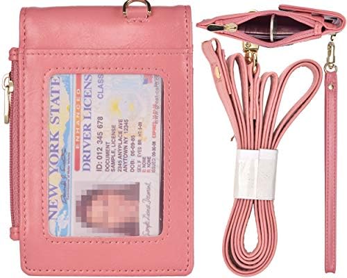 محفظة بيورلايك الجلدية بجهتين لحامل شارات الهوية مع نافذة واحدة لبطاقة الهوية و3 فتحات للبطاقات مع غطاء جيب جانبي بسحاب للعملة المعدنية قطعة واحدة 18 1 حبل للرقبة وقطعة واحدة من معصم اليد
